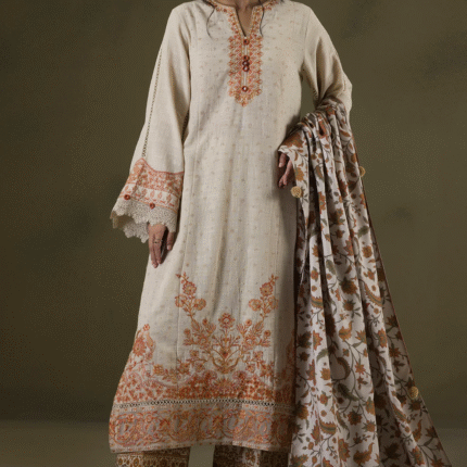 Zellbury Winter Shirt Shalwar With Shawl – 3-Piece Unstitched | Premium Khaddar Suit for Women (WUW25E30235)