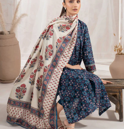 Limelight Printed Khaddar 3 Piece Blue-U3790
