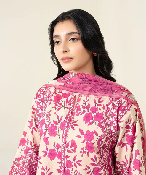 Sapphire Printed Khaddar 3 Piece Pink and White U2D-DY23V6-7WS