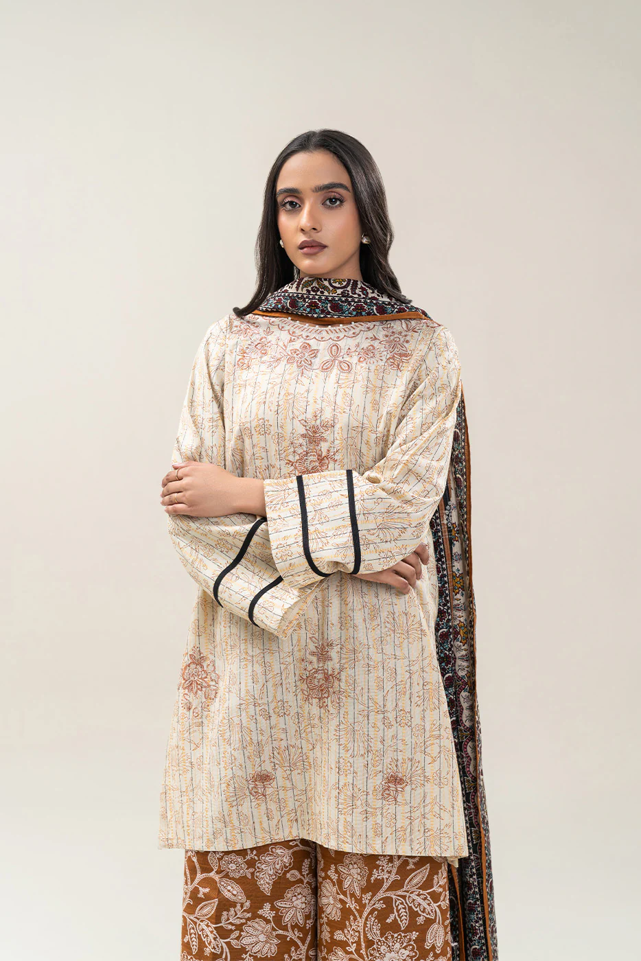 Home Beechtree BEECHTREE 3 PIECE EMBROIDERED KHADDI JQ SUIT-HAZEL WOOD (UNSTITCHED)