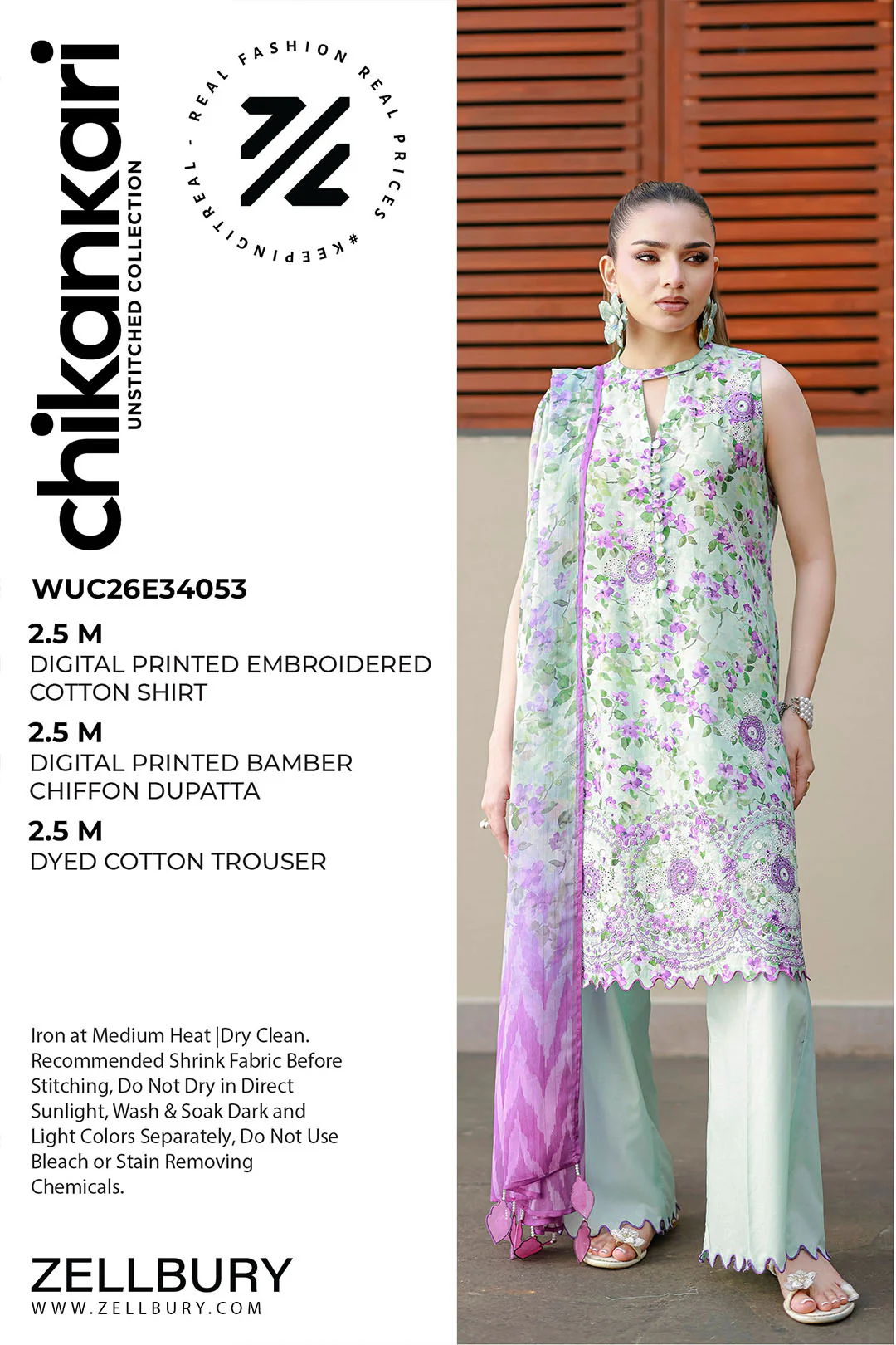 Embroidered Chikankari Cotton 3 Piece WUC26E34053