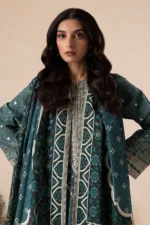 The outfit includes a beautifully embroidered khaddar shirt, a printed embroidred trouser, and a printed khaddar dupatta — offering a complete and elegant winter look suitable for daily wear, office, university, and casual outings.