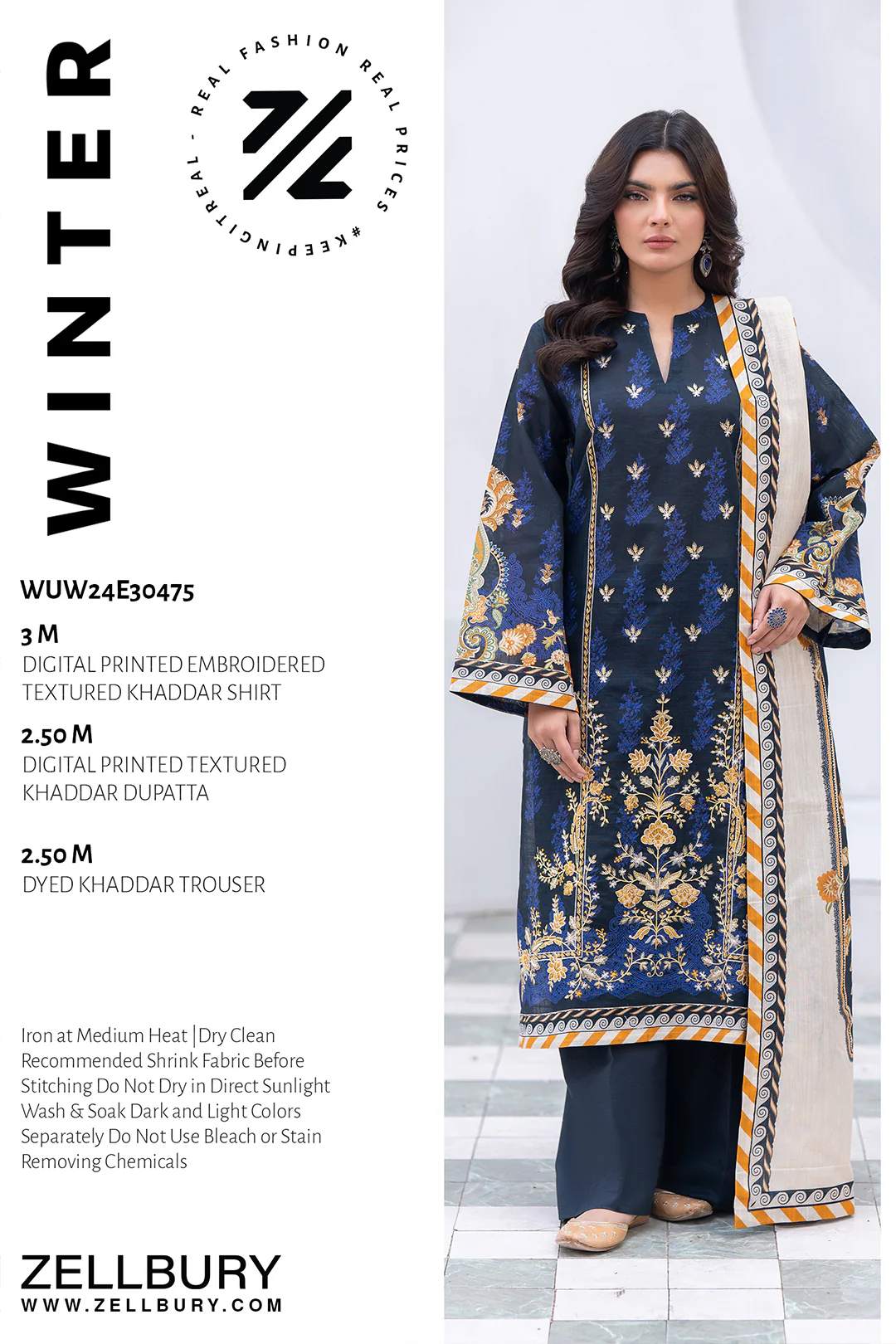 Digital Printed Embroidered Textured Khaddar Shirt 3 M