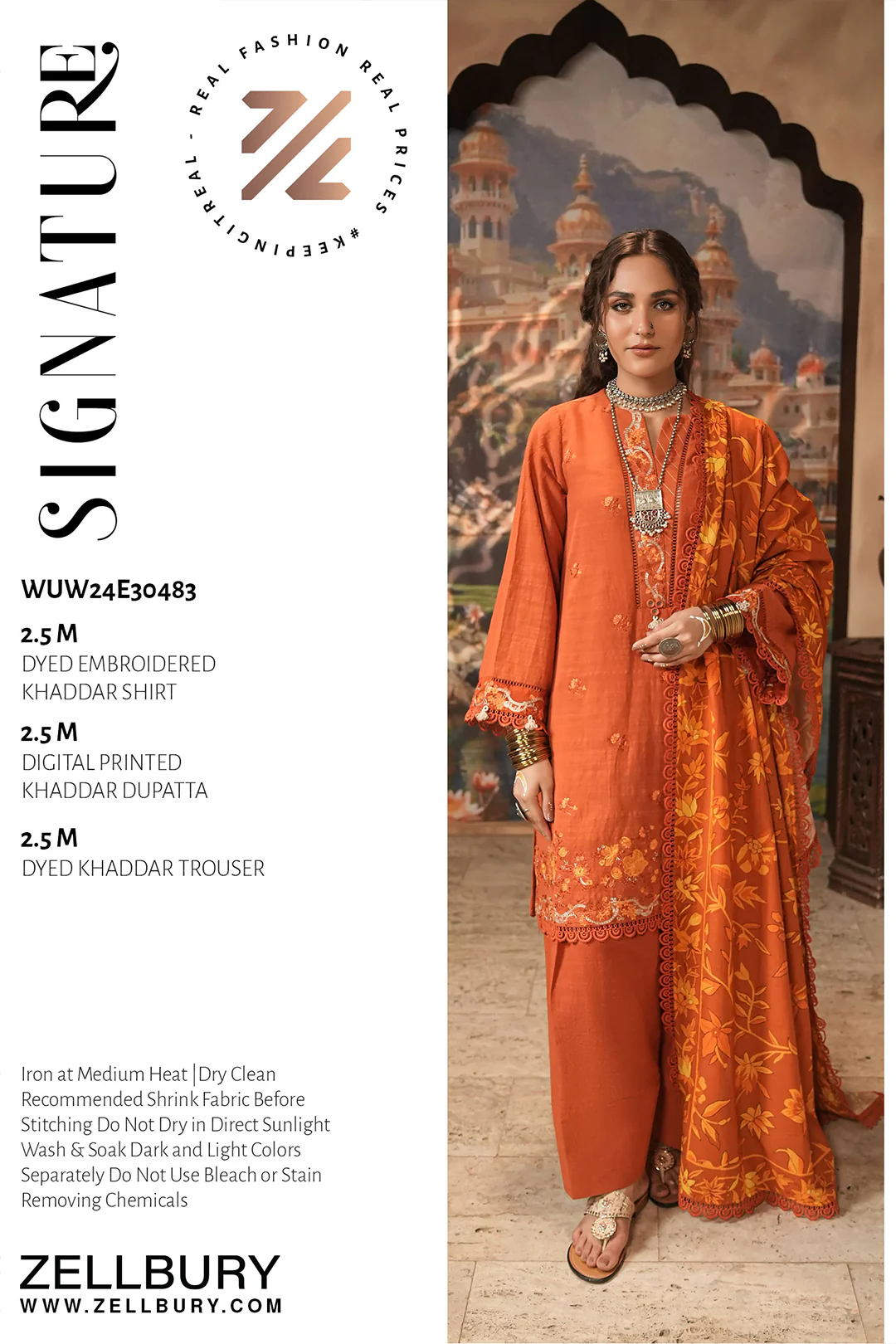 This unstitched winter 3-piece suit from Zellbury brings you the perfect blend of warmth, comfort, and style. Crafted from premium winter khaddar, the outfit features a beautifully embroidered shirt paired with a dyed shalwar/trouser, while the matching printed dupatta completes the look with charm.
