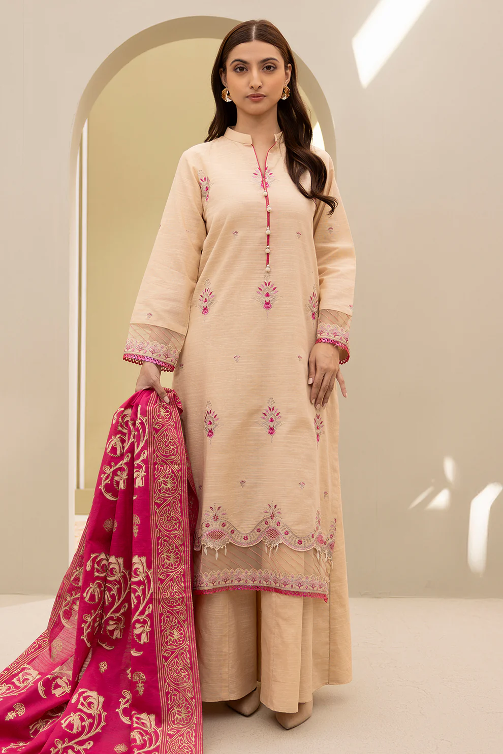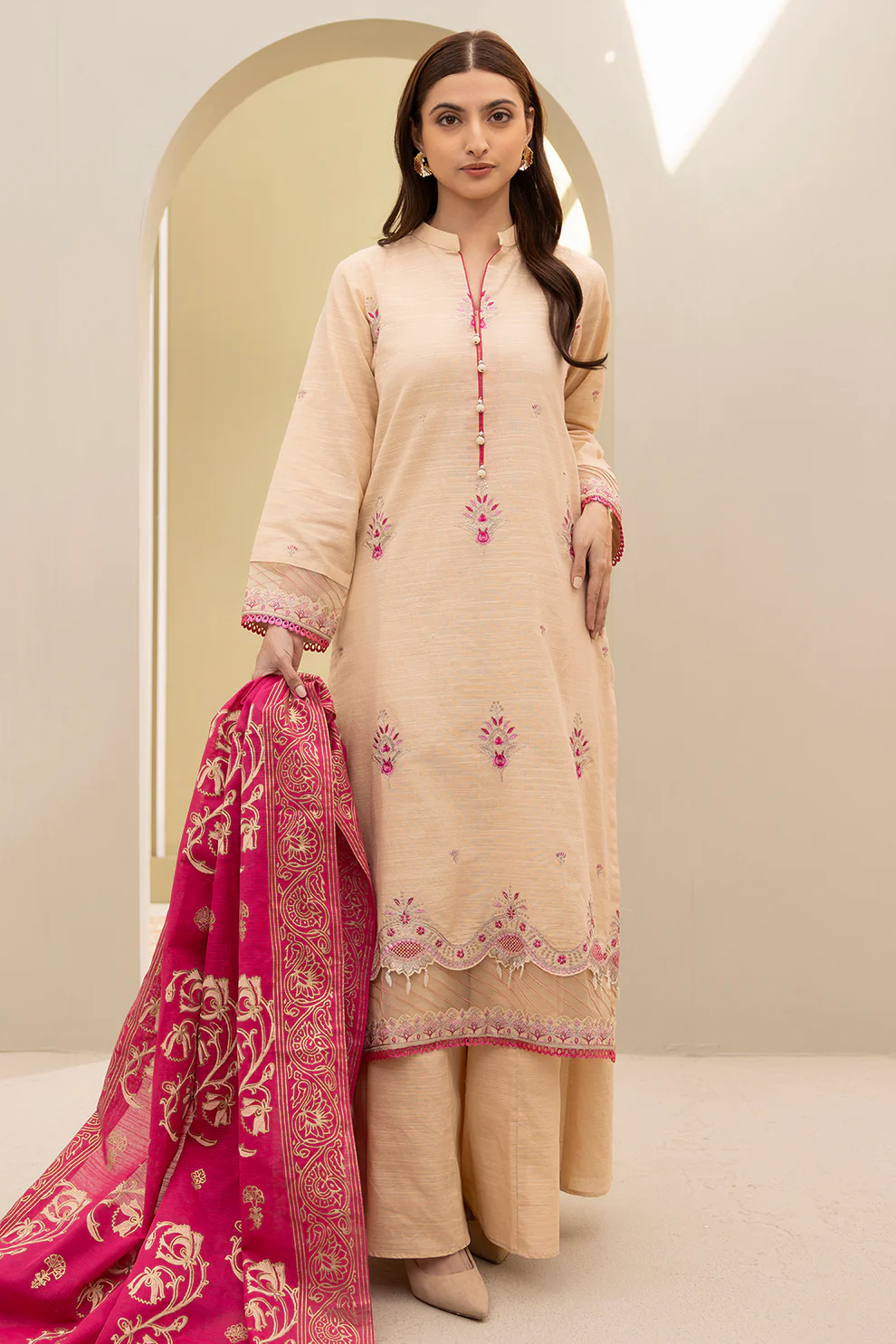 Stay warm and stylish this winter with this beautifully embroidered 3-piece khaddar suit by Zellbury. Crafted from premium winter khaddar, the outfit balances comfort, softness, and seasonal elegance — perfect for cozy winter days.