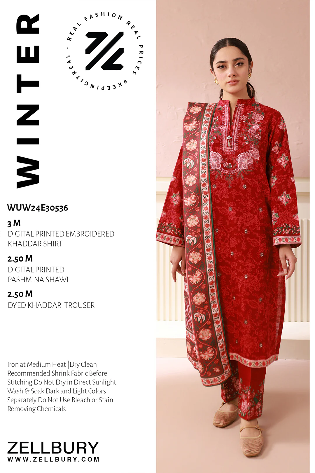 Zellbury Winter Unstitched 2-Piece Khaddar Suit | Digital Printed Shirt & Dupatta | Original Collection 2025