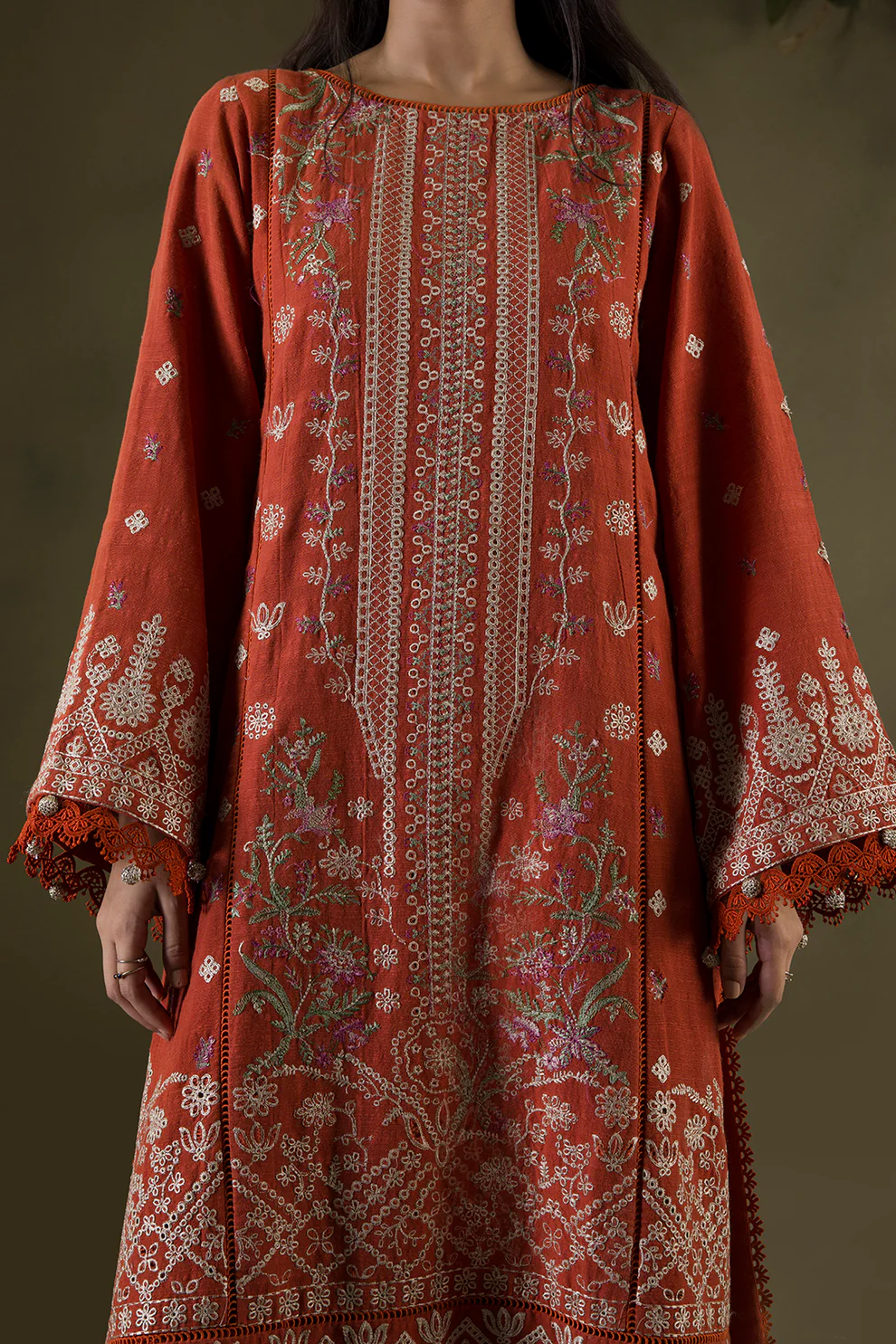Zellbury Winter Collection 2025 – 2 Piece Khaddar Suit for Women | Shirt & Dupatta | WUW24X20503