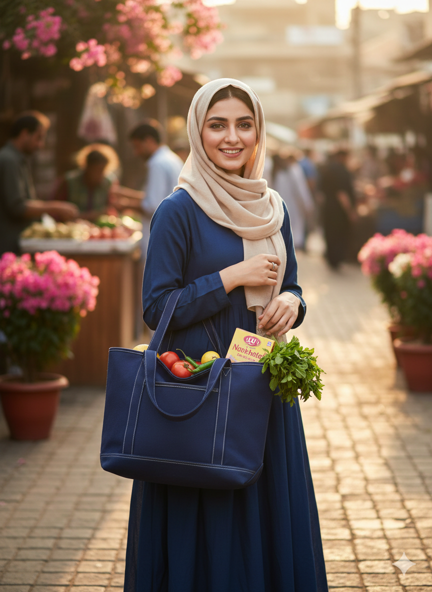 Upgrade your everyday carry with this Premium Nautical Canvas Tote Bag. Designed for the modern Pakistani woman, this bag blends international style with daily practicality.