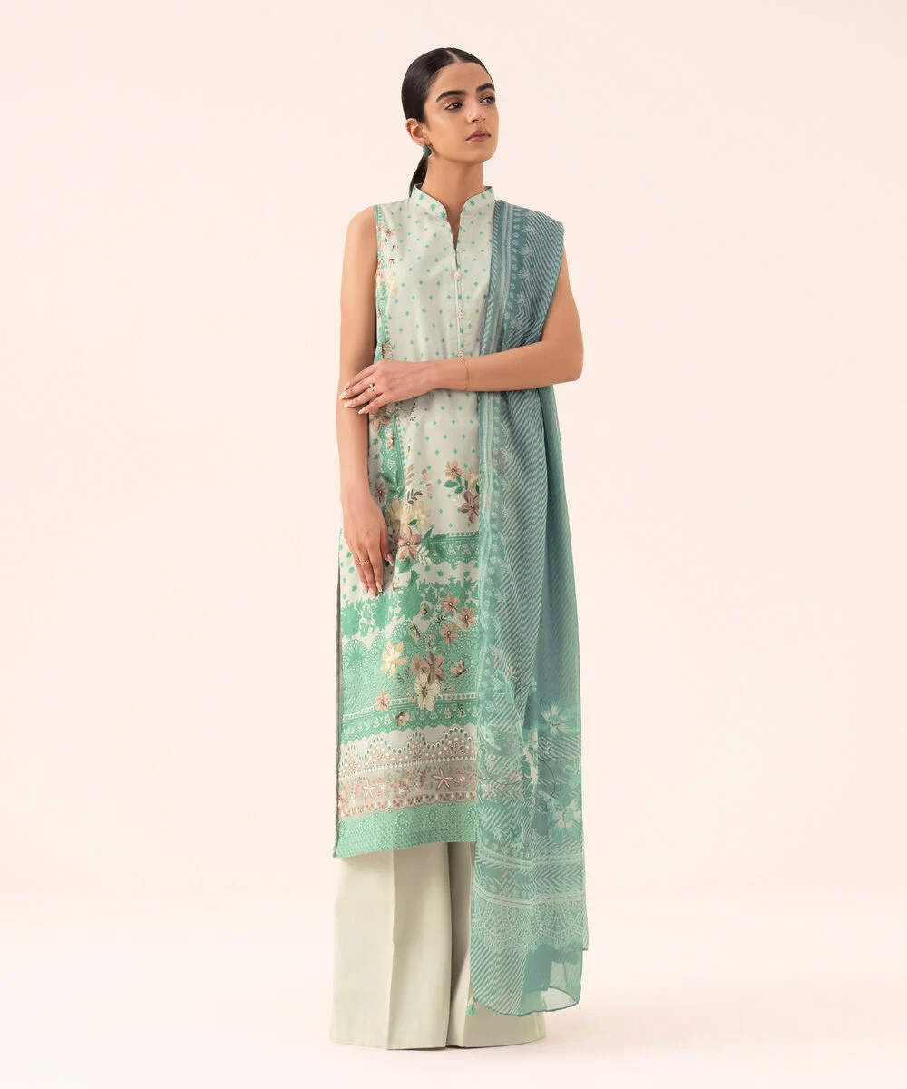 Sapphire Embroidered Cotton Viscose 3 Piece Sage Green 0U3PEDY25V79