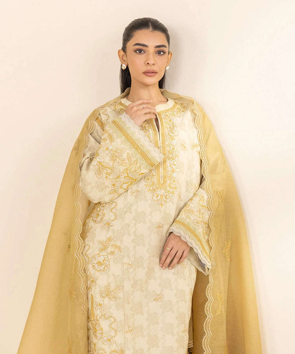Sapphire Embroidered Khaddar 3 Piece Off White and Light Mustard 000USGDADD52
