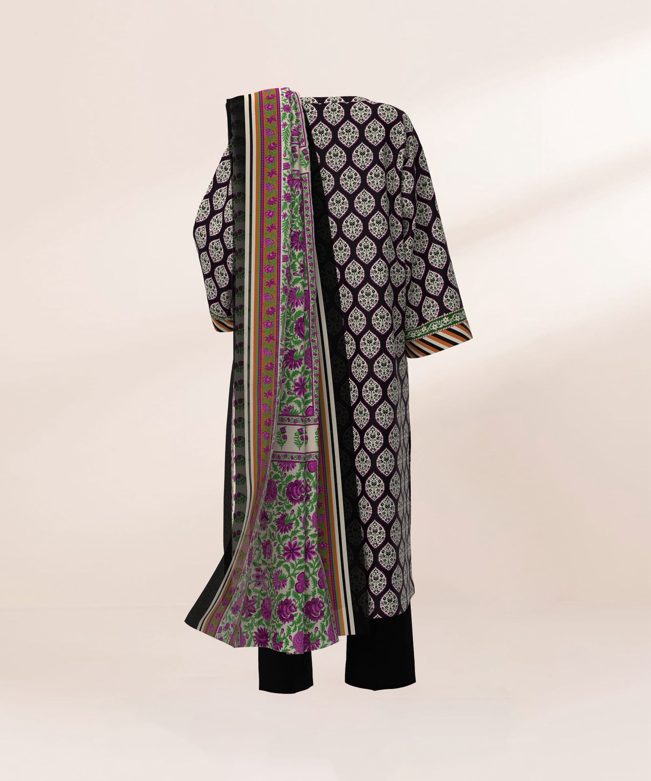 Sapphire Printed Lawn 3 Piece in Black Color U3PDY25V323DS