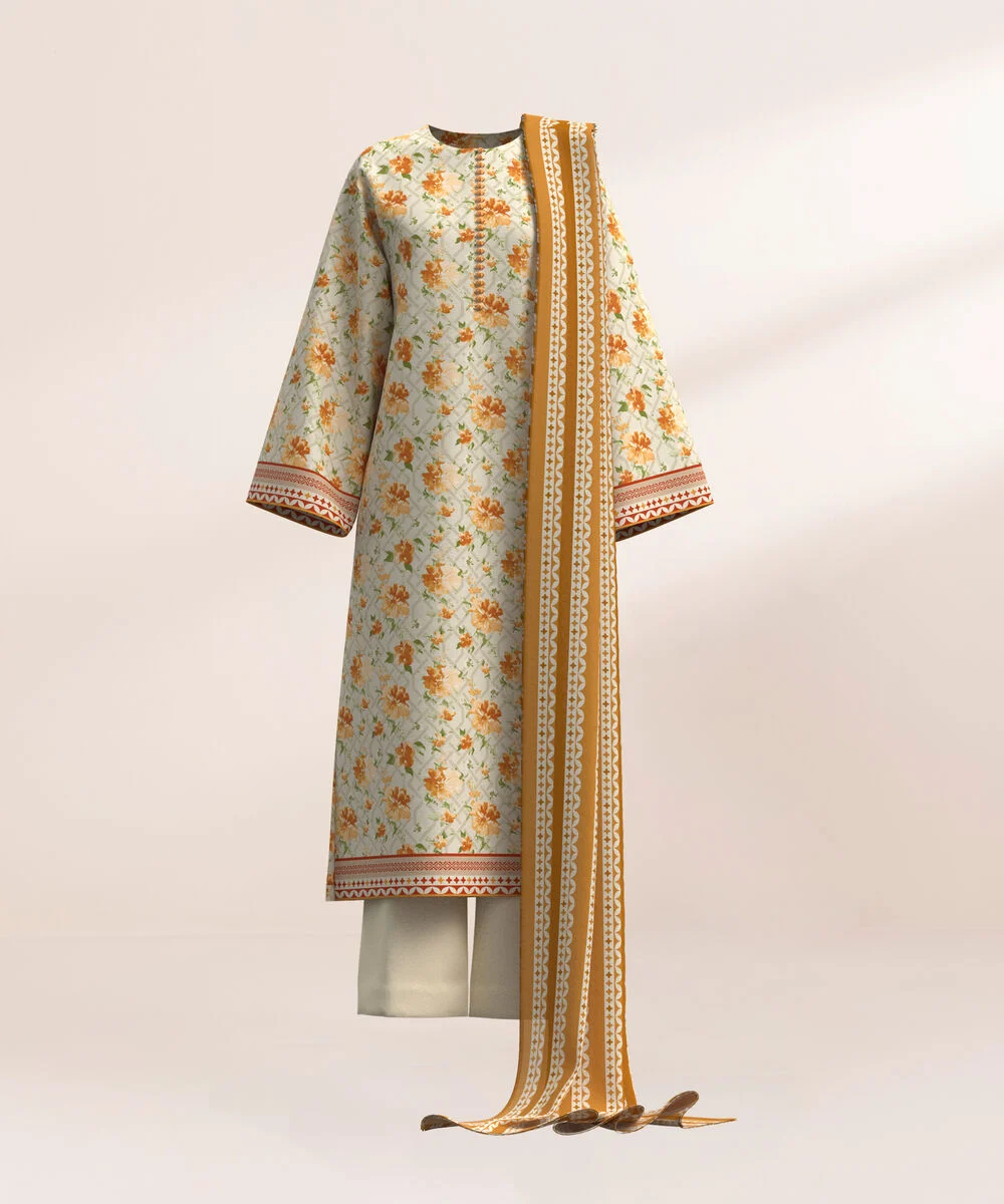 Sapphire Printed Lawn 3 Piece Mustard, Yellow and Beige 3PDY25V419DS