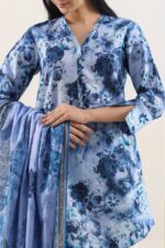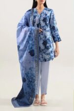 Embrace timeless winter elegance with the Saya Unstitched Printed Cotton Khaddar 3-Piece Suit, now available at Nasima Fabrics. This exquisite ensemble radiates a distinct blue hue, blending warmth and sophistication for the modern woman.
