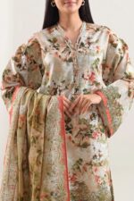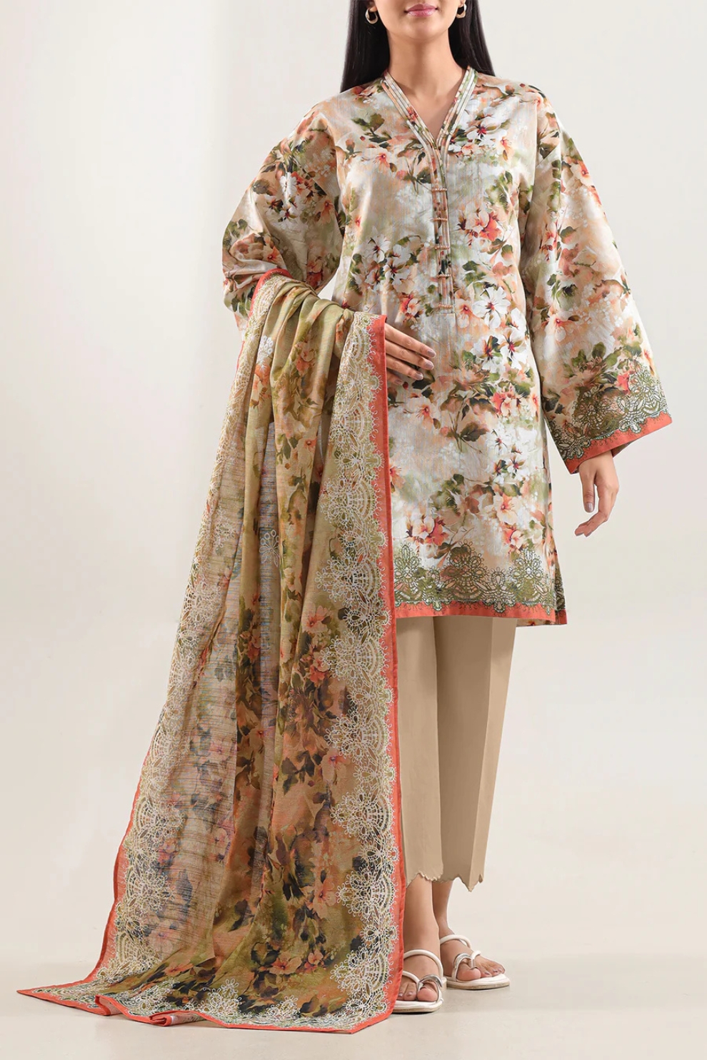 Saya Premium Printed Cotton Khaddar Shirt Trouser Dupatta | U04-25660-01A | Beige