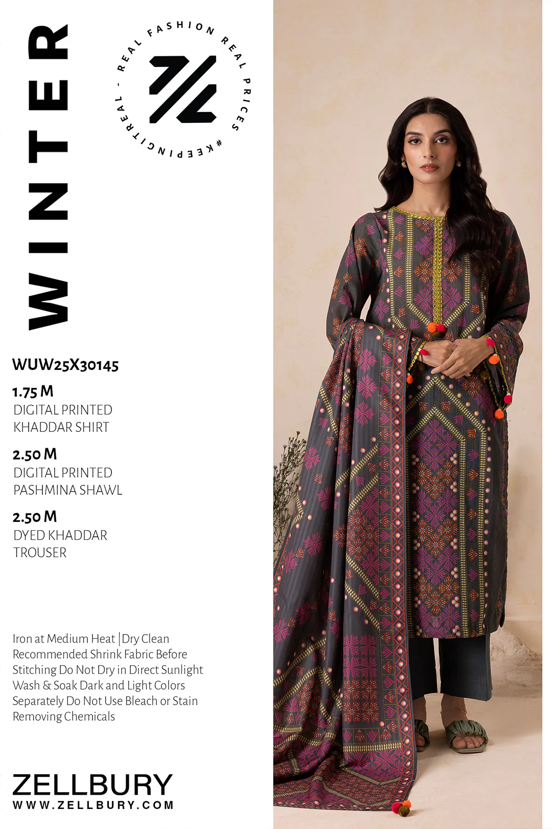 Digital Printed Khaddar Shirt 1.75 M