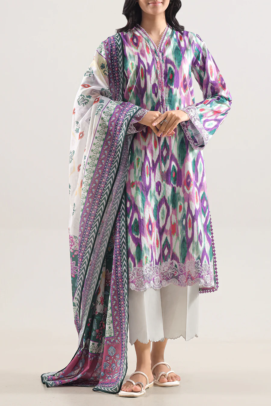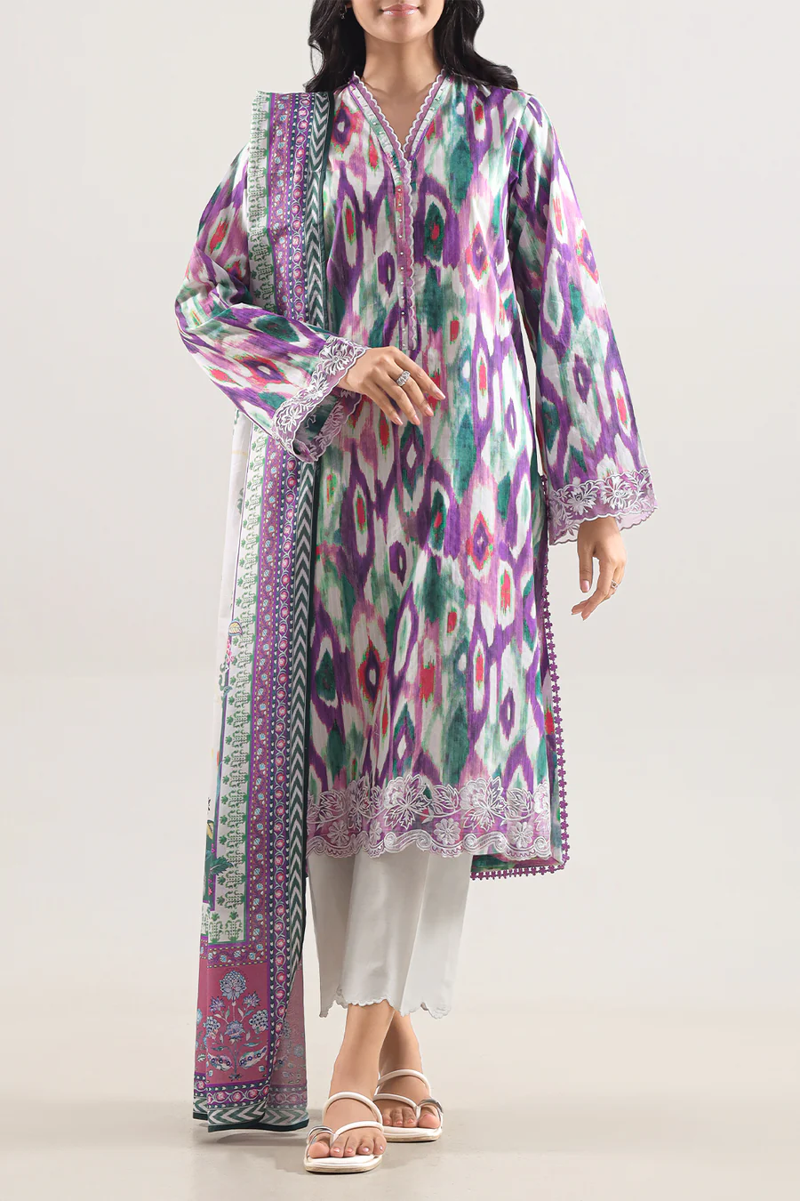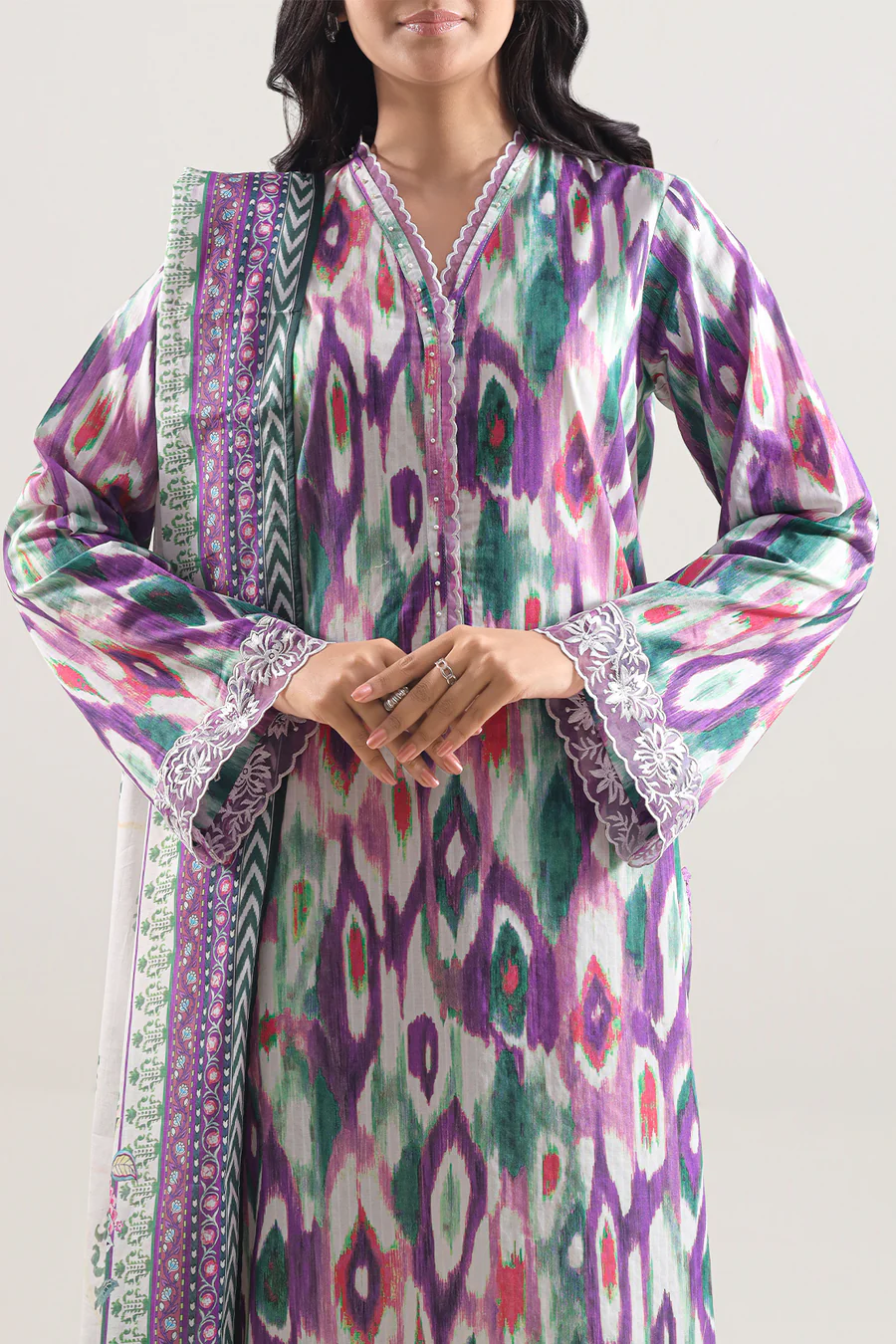 Luxuriously Soft And Stylish, This SAYA Unstitched Printed Embroidered Cotton-Tencel 3-Piece In Purple Offers Elevated Comfort With A Modern Edge. The Cotton-Tencel Blend Delivers A Sumptuous Feel With Excellent Breathability And Soft Drapability. Intricate Embroidery Enhances The Printed Design With Subtle Detailing That Adds Texture Without Compromising Elegance. This 3-Piece Set Consists Of Shirt, Trouser And Dupatta In Unstitched Form, Allowing You Full Creative Control Over Tailoring And Fit. Ideal For Daytime Festivities, Elegant Receptions Or Stylish Gatherings, This Ensemble Marries Poise, Versatility And Refined Artistry.