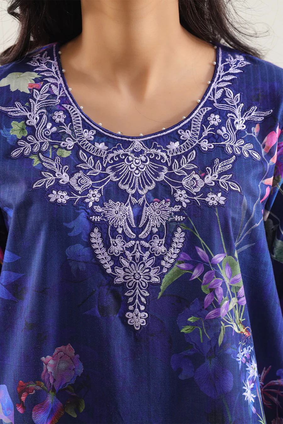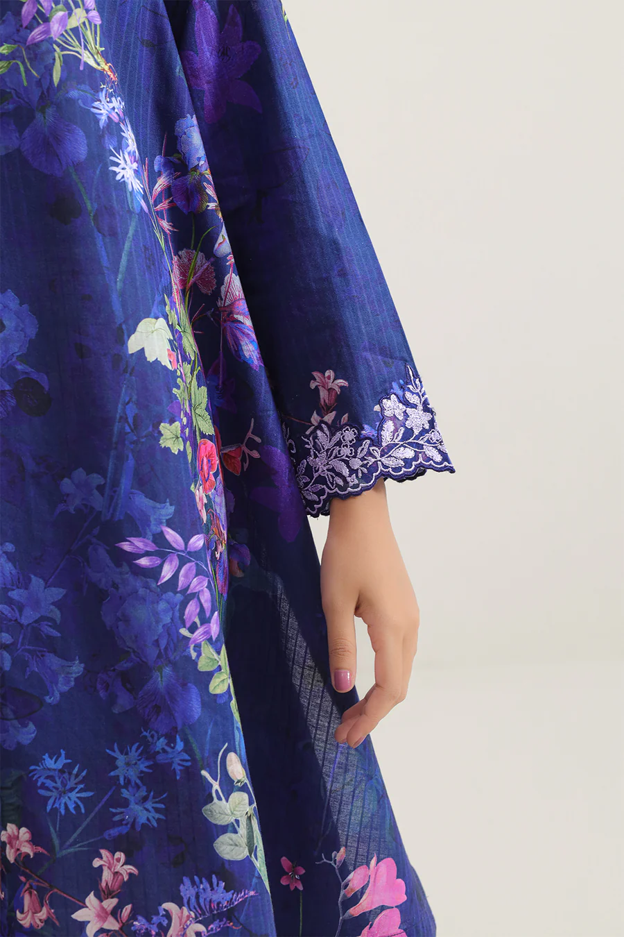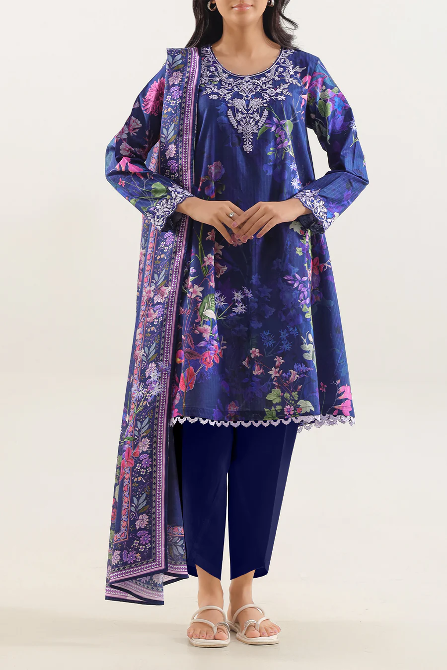 Unstitched Printed Embroidered Strip Lawn 3-Piece By SAYA Features A Cool Deep Blue Tone. Crafted From Ultra-Light Lawn Fabric With Elegant Vertical Stripes And Subtle Embroidery, This Set Offers Breathable Comfort And Tailoring Flexibility. The Shirt Panel Arrives With Ample Width For Custom Stitching, The Trouser Fabric Is Premium Dyed Cambric, And The Coordinated Printed Lawn Dupatta Adds Flow And Finish. Ideal For Daytime Festive Gatherings Or Summer Soirée Wear Where Style Meets Ease.