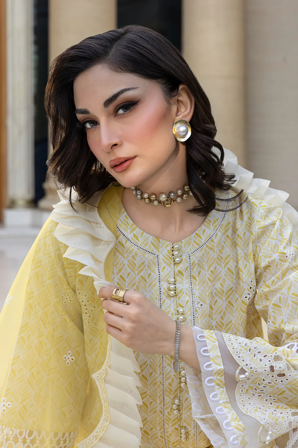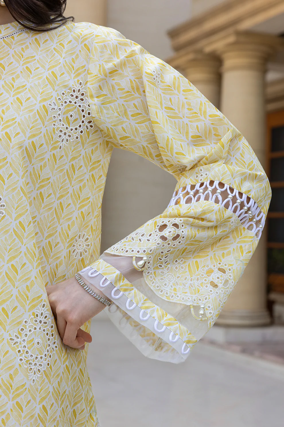 Elevate your wardrobe with this exquisite 3-piece unstitched ensemble featuring traditional chikankari embroidery. The set includes a cambric shirt with delicate hand-embroidered detailing, a flowing organza dupatta that adds sophistication to any look, and cambric shalwar for comfortable wear. The radiant lemon yellow hue brings warmth and elegance to your ethnic collection. Perfect for festive occasions or everyday refinement, this premium combination showcases masterful craftsmanship and timeless design. Ideal for those who appreciate quality fabrics and authentic embroidered artistry.