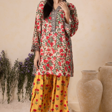 This set includes a beautifully printed khaddar shirt along with a matching trouser — easy to stitch, easy to style, and ideal for casual winter wear.