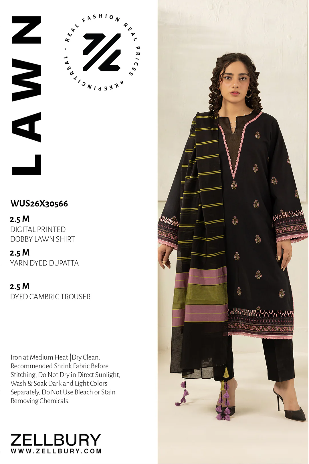 Zellbury Dobby Printed Lawn 3 Piece Black WUS26X30566