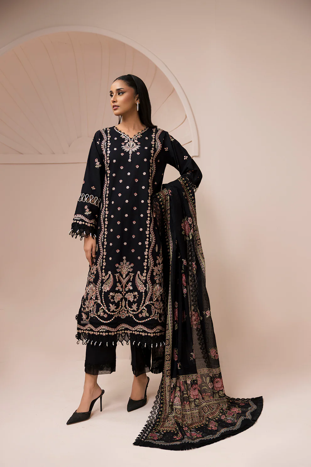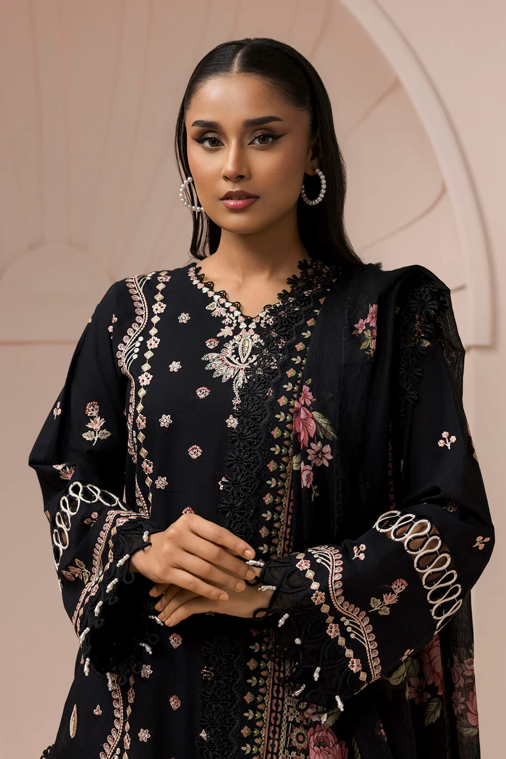 Tag: Zellbury Embroidered Cotton 3 Piece Black Color WUC25E30212