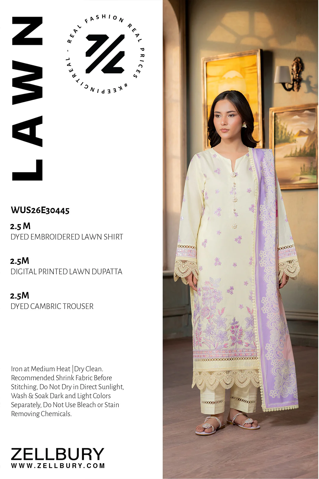 Zellbury Embroidered Lawn 3 Piece in Yellow Color WUS26E30445