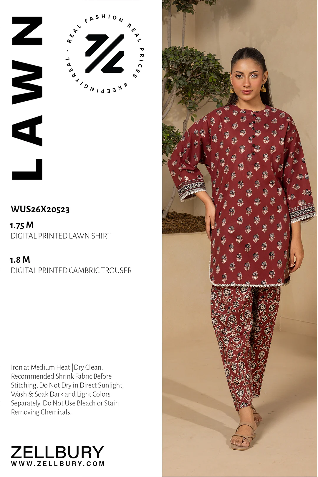 Zellbury Printed Lawn 2 Piece in Maroon Color WUS26X20523
