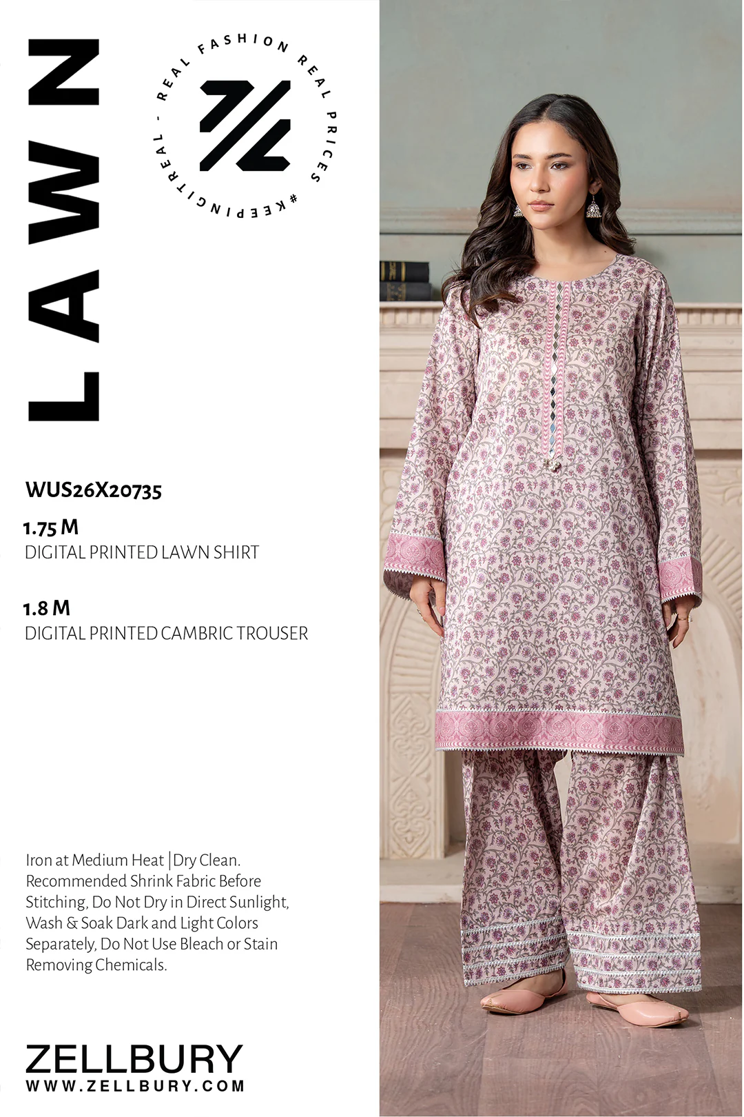 Zellbury Printed Lawn 2 Piece in Pink Color WUS26X20735