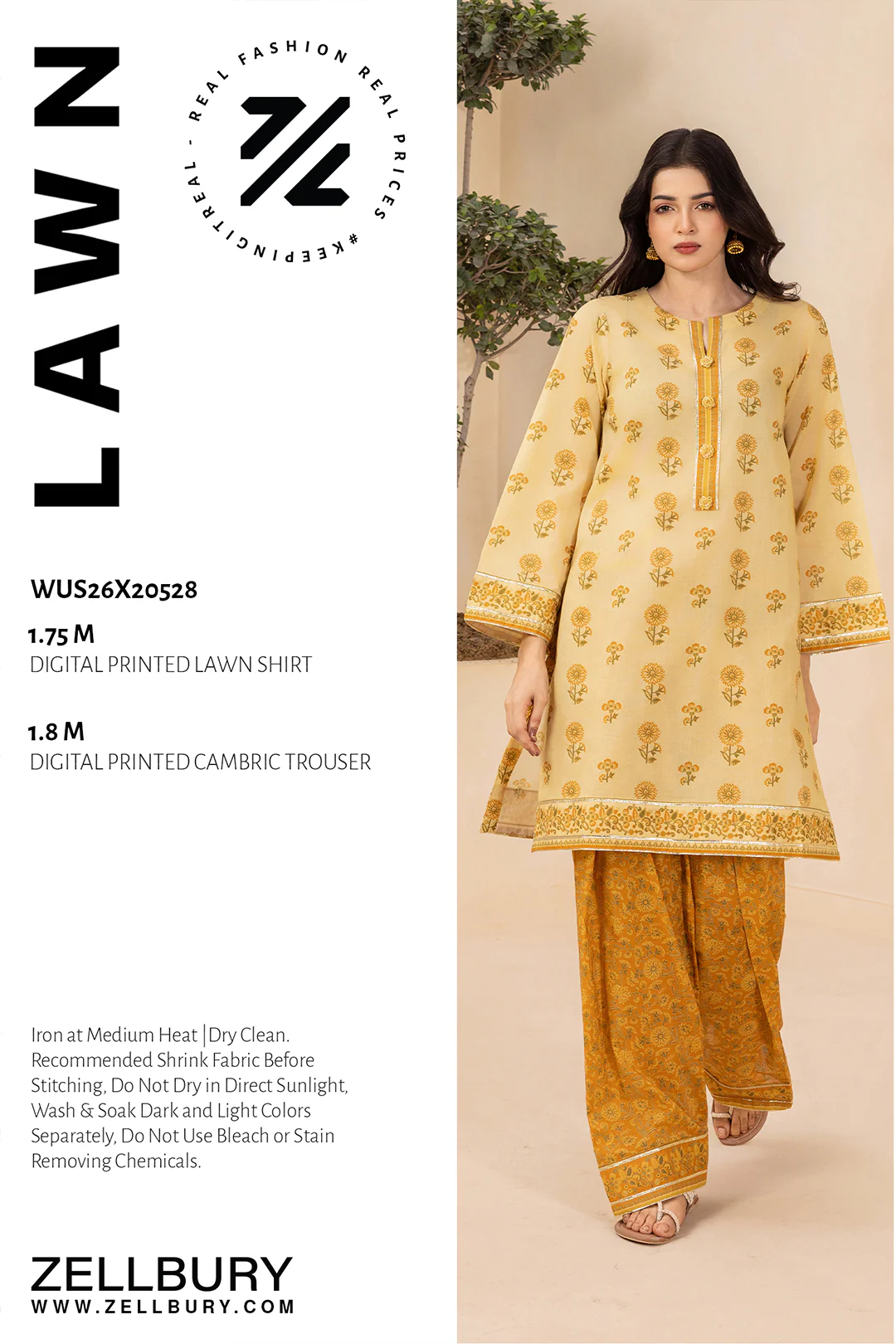 Zellbury Printed Lawn 2 Piece in Yellow Color Shirt Trouser WUS26X20528