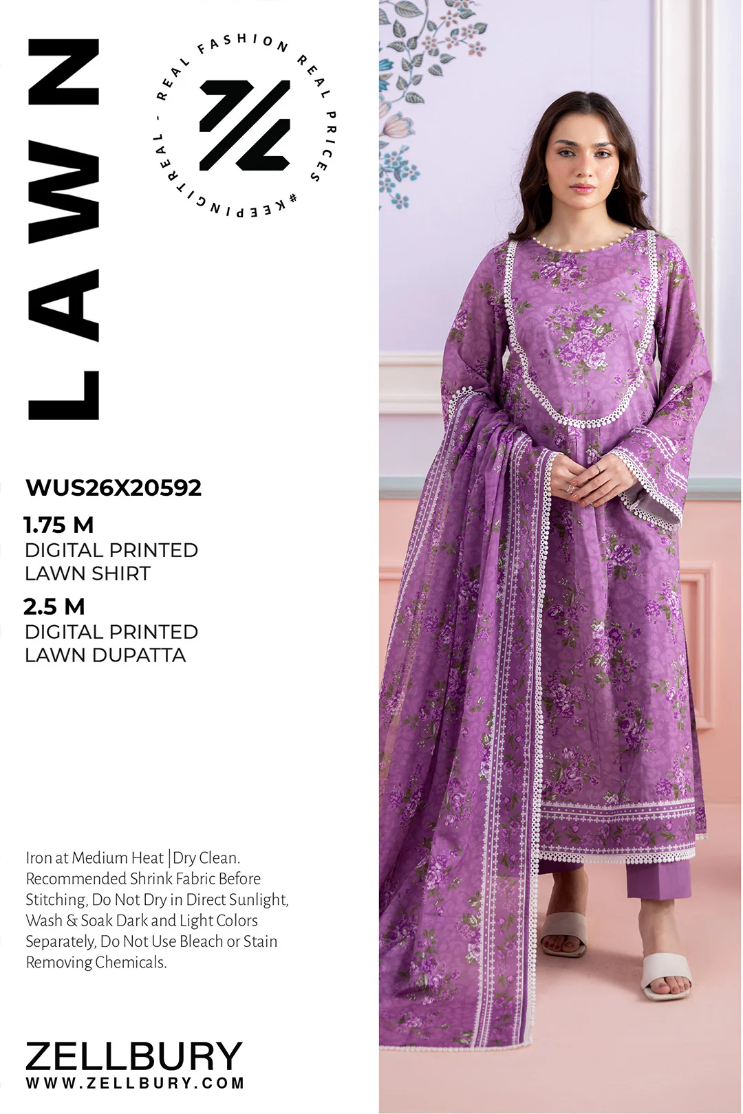 Zellbury Printed Lawn 2 Piece Shirt Dupatta in Blue Color WUS26X20592