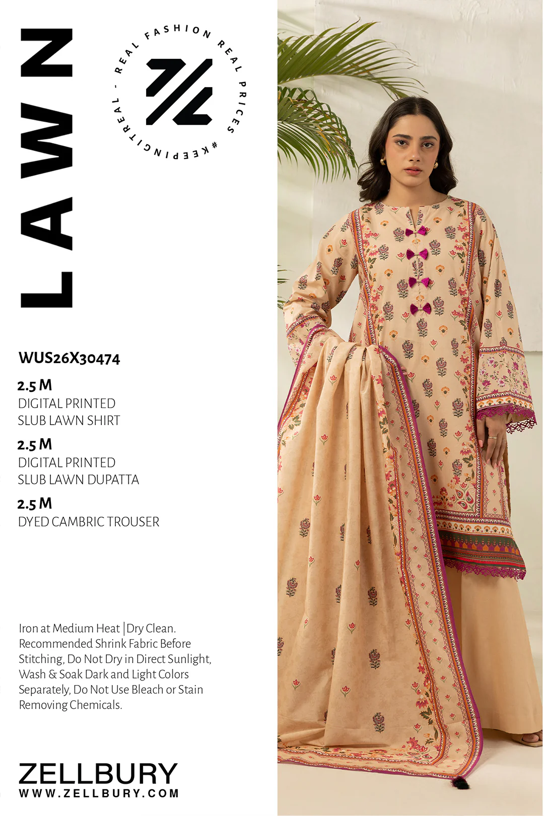 Zellbury Printed Lawn 3 Piece in Beige Color WUS26X30474