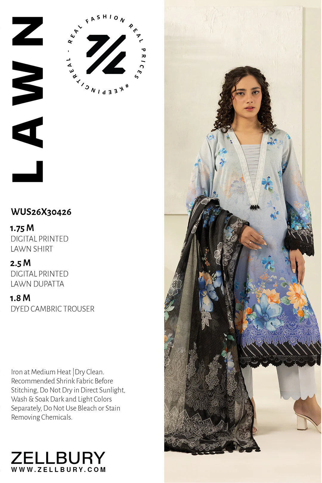 Zellbury Printed Lawn 3 Piece in Blue Color WUS26X30420