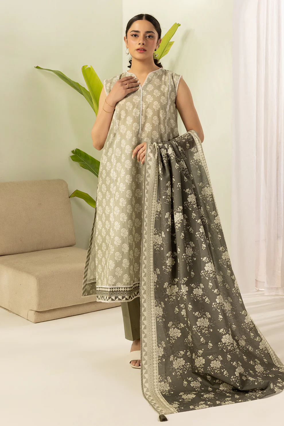 Zellbury 3-Piece Printed Khaddar Suit (Shirt, Shalwar & Dupatta) – WUW24X30203