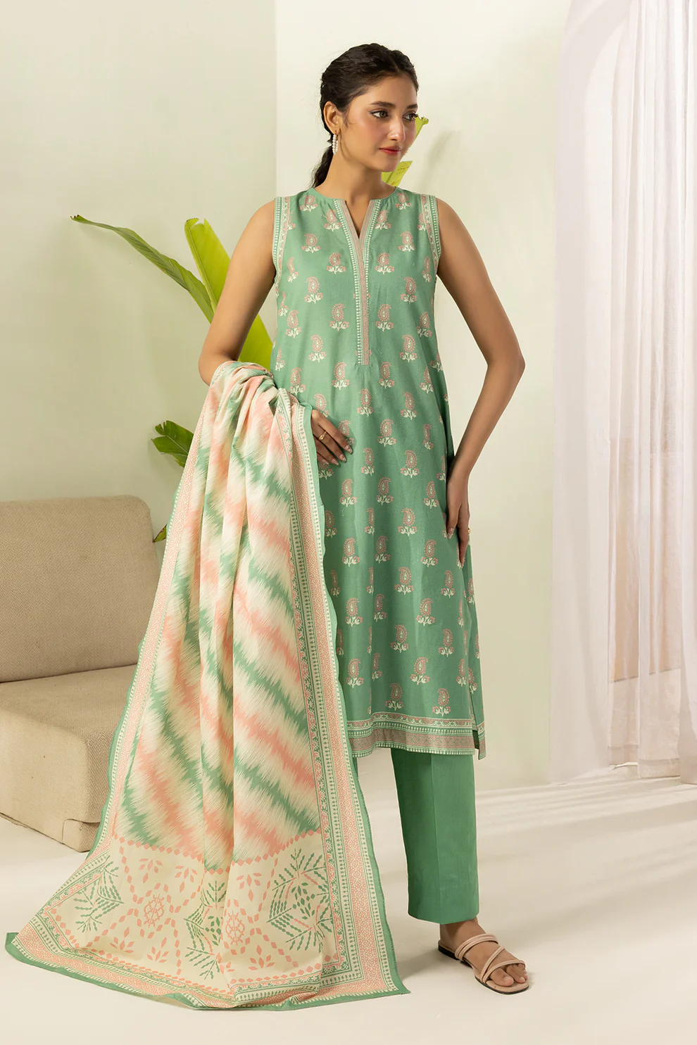 Zellbury Printed Lawn 3 Piece in Sage Green Color WUS26X30554
