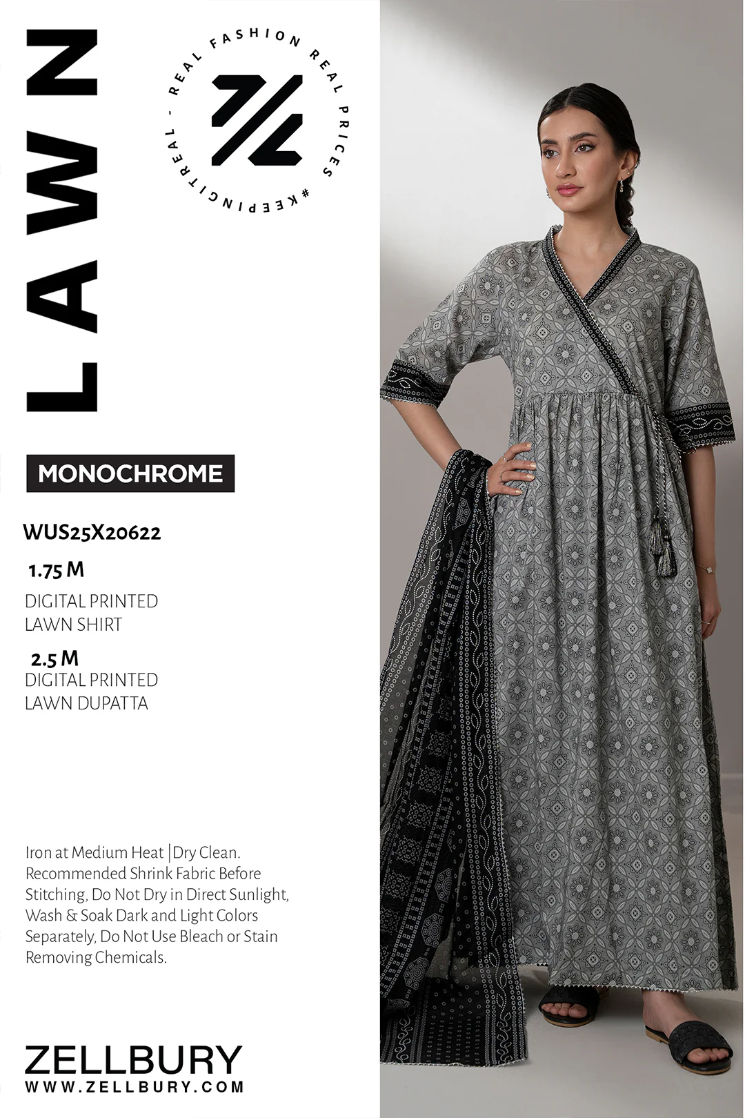 Tag: Zellbury Printed Lawn Shirt Dupatta Grey Monochrome WUS25X20622