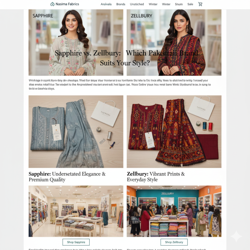 When it comes to unstitched Pakistani suits, two names consistently pop up: Sapphire and Zellbury. Both are powerhouses in the fashion industry, offering stunning collections that cater to diverse tastes. But if you’re standing in front of a rack (or browsing online at Nasima Fabrics!) wondering which one to choose, you’re not alone.